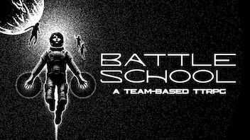A black-and-white zine by Andrew Beauman. Battle School puts the players in an Ender’s Game-esque military academy and pits them against other squads of cadets using a collaborative d6 dice-pool system. The ‘complete edition’ tier includes a 50+ card deck of locations and hazards to help the GM.